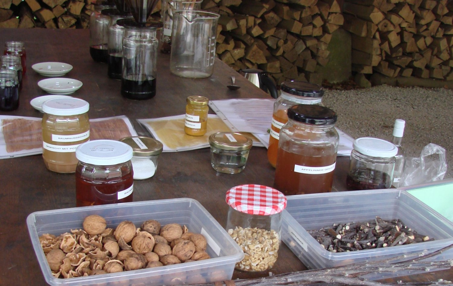 Pflanzen werden gesammelt, aufgekocht, mit dem Sud wird gefärbt – immer mit überraschenden Ergebnissen. Über Mittag wird gebrätelt.