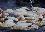 5. Falten und mit der Gabel den Rand andrücken6. Auf der Glut langsam (nicht zu heiss) ausbacken.