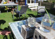 Wichtig ist, dass die Wasserlinie höher ist als das Ende, wo das Wasser herauskommt. So wird das Wasser mittels Schwerkraft transportiert.